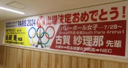 赤崎さんは中学時代バレー部に所属していました。今回パリ五輪女子バレーボール日本代表として出場される古賀紗理那選手は1学年上の先輩で、赤崎さんとは2年間同じ体育館で練習してきました。